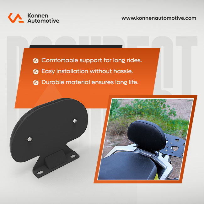 Upgrade every ride with enhanced back support built for comfort and confidence. Engineered with a sturdy metal base at the rear, it offers solid and dependable strength. The premium padded cushion delivers superior ease, ideal for extended travel. Precision-designed for a perfect fit, it adds both functionality and a refined finish to your motorcycle.