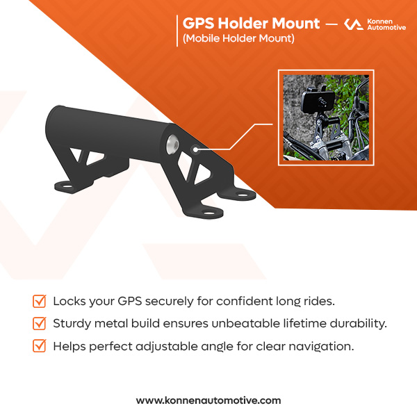 The GPS Mount helps riders securely place their phone holders or GPS devices in a fixed and stable position. Designed for firm support, it prevents shaking during rides and ensures clear visibility of navigation. Its sturdy build offers reliable performance, making it easy for riders to mount their devices safely and ride with confidence.