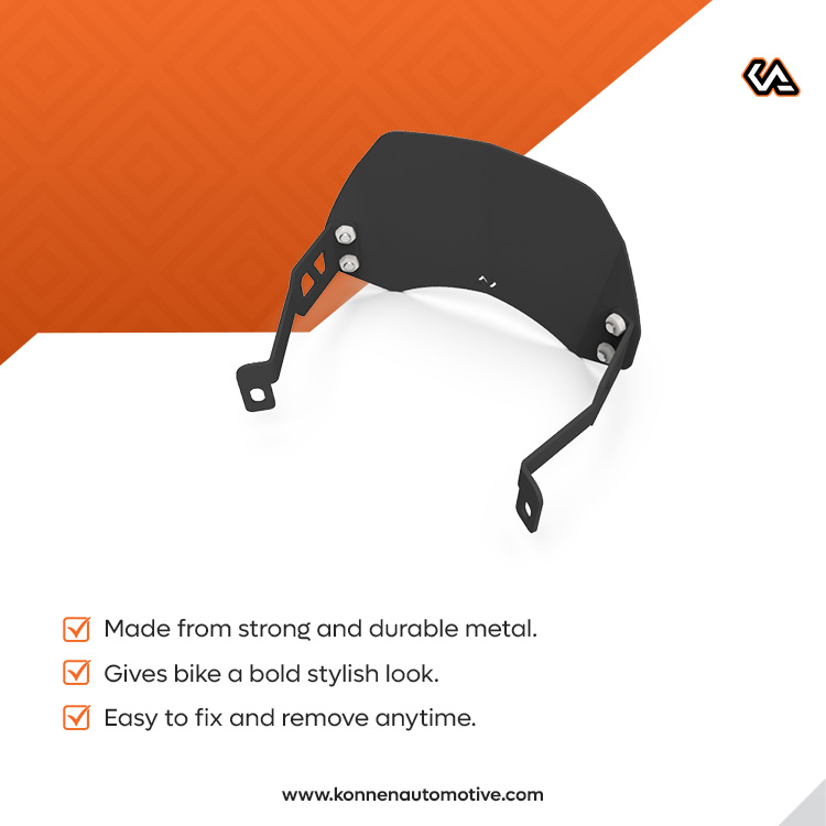 Ride in style while staying protected with our Metal Visor, crafted from high-quality metal for durability and strength. Designed to shield the rider from wind, dust, and debris, it provides a reliable barrier while enhancing the rugged look of your bike. The visor ensures long-lasting performance and a perfect fit for a seamless appearance.