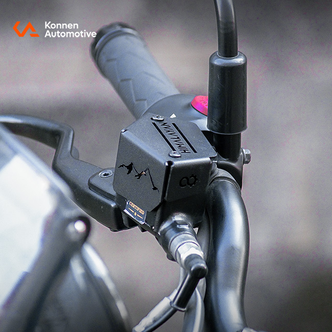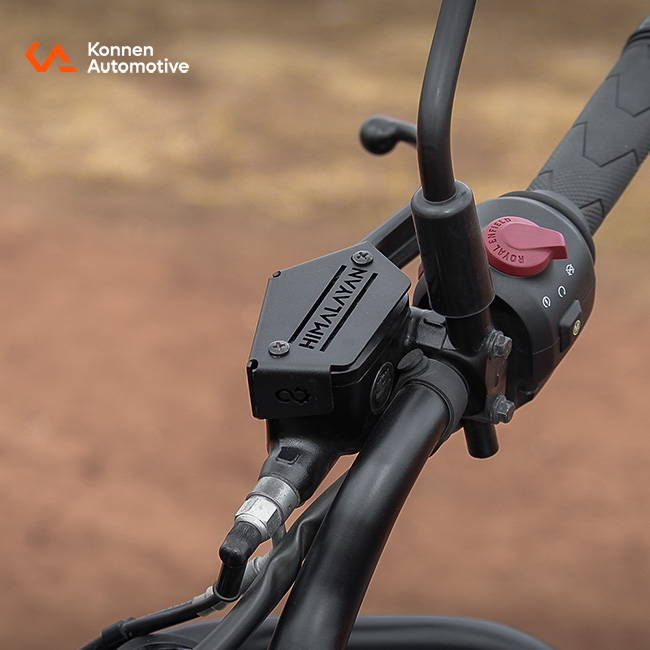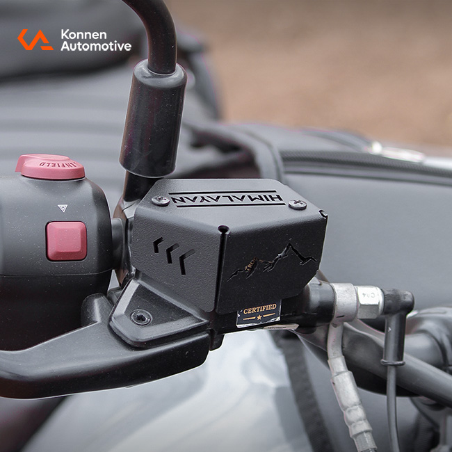 Heavy duty Front Reservoir Guard for Himalayan 450. Protects brake fluid reservoir from damage, leaks and dust while adding a clean premium look.