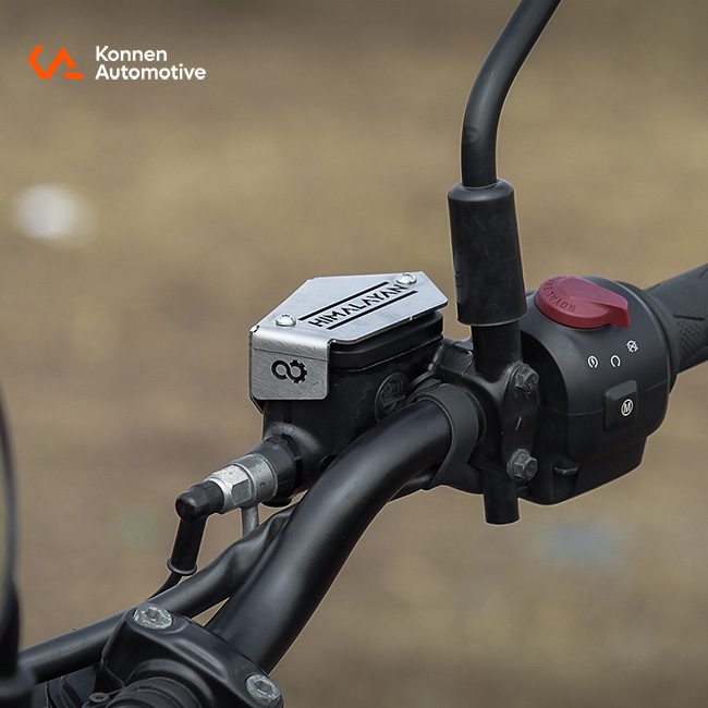 The front reservoir guard protects the brake oil reservoir from scratches and damage caused by stones and debris kicked up by other road users. It prevents direct impact on the reservoir surface, helping avoid paint chips, cracks, and corrosion. Designed for secure fitment, it ensures consistent protection without affecting functionality or appearance.