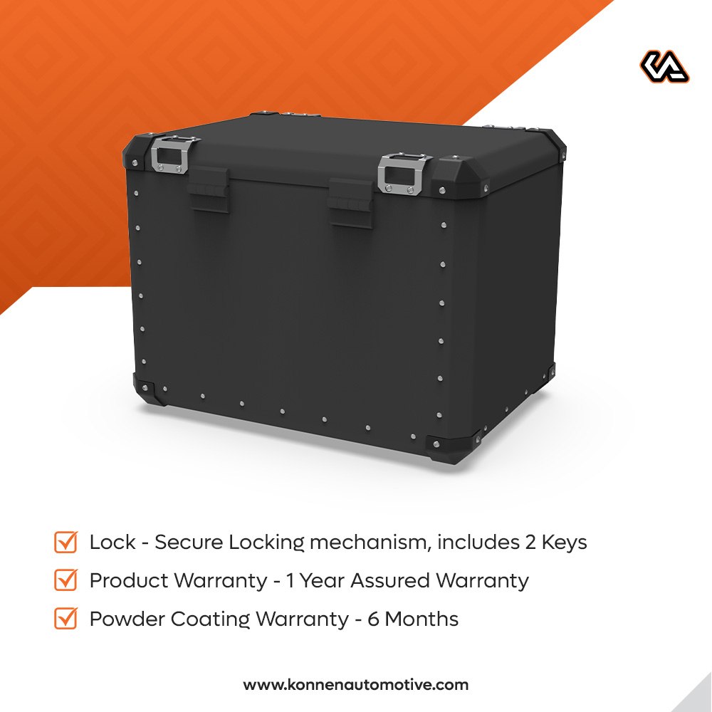 Konnen Premium Aluminium Top Box with Helmet Storage, inner liner & Extra space. Perfect for Tourer & Traveler Bikes. Secure, Durable, Quick-Release & Spacious