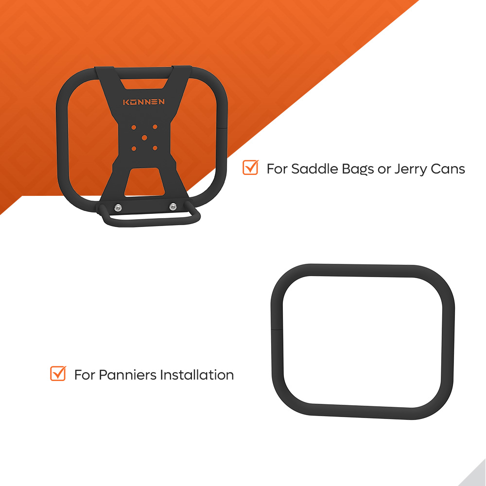 The Konnen Saddle Stays are a versatile 3-in-1 solution crafted for every kind of rider. Whether you’re a hardcore tourer, an off-road explorer, or a casual commuter, these stays are built to adapt. They securely hold Konnen panniers for long journeys, support jerry can holders for fuel in remote areas, and accommodate saddle bags for quick rides. Made from extra-tough, heavy-duty metal with a weatherproof powder-coated finish, they’re designed to endure any terrain. While the price may be slightly higher compared to others, the unmatched strength and durability of our saddle stays ensure they can confidently hold even the heaviest panniers—proof of the premium materials we use.