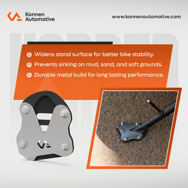 - Prevents Side Stand Sinking on soft or uneven surfaces