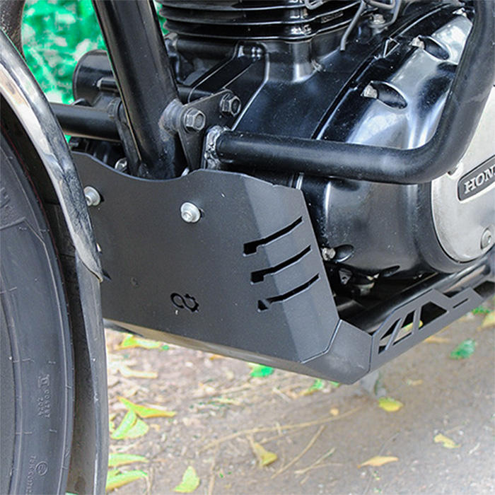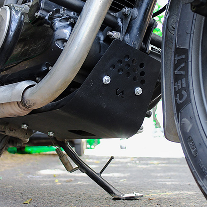 Protect Your Motorcycle’s Engine with our sturdy Sump Guard, designed to shield the engine sump from stones, debris, and impacts during rides. Made from high-quality metal, it provides reliable protection on rough terrains and prevents damage that could lead to costly repairs. Built for durability and a perfect fit, the sump guard ensures both safety and a rugged look for your bike.