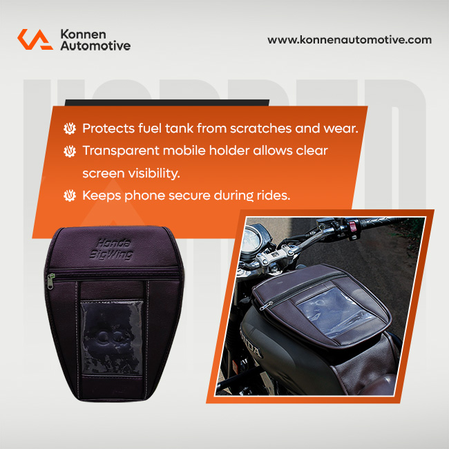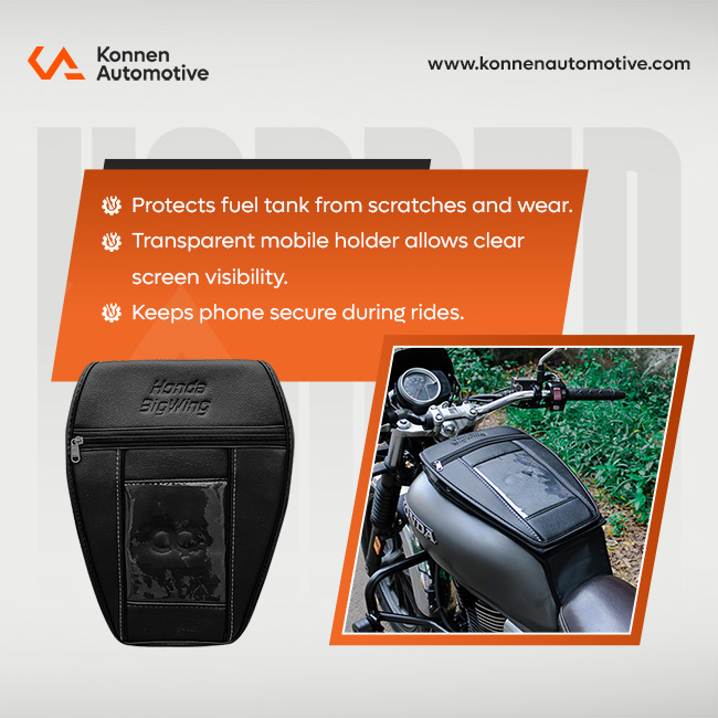 Protect your motorcycle’s fuel tank with our durable Tank Cover, designed to shield it from scratches, dents, and minor impacts. It also features a storage option, allowing you to keep small essentials handy during rides. Easy to install and perfectly fitted, this cover keeps your bike looking pristine while adding both protection and convenience.