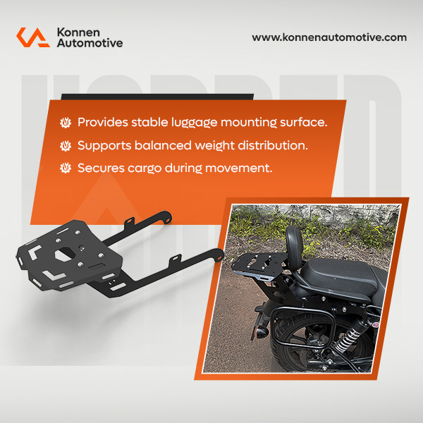 Enhance your bike’s carrying capacity with our sturdy Top Rack, designed to support Luggage for Long rides and daily use. Made from high-quality metal, it provides a stable and durable platform while maintaining a sleek and rugged look. Perfectly engineered for a secure fit, this Top Rack adds both utility and style to your motorcycle.